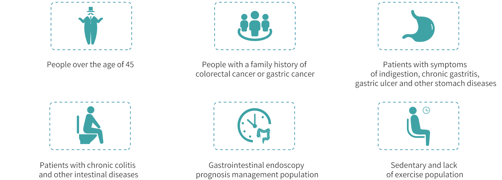 · Adopting advanced fecal DNA testing technology, by jointly detecting the methylation levels of SFRP2 and SDC2 genes in fecal samples, based on the analysis of large sample size experiments in China, predicting the risk of colorectal cancer, early colorectal cancer can be detected 5-6 years in advance.