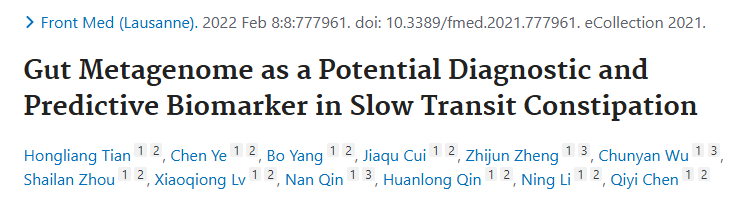 - 肠道宏基因组作为慢传输型便秘的潜在诊断和预测生物标志物