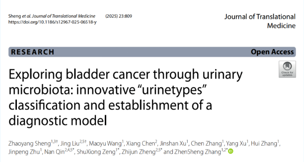 - 基于尿液微生物菌群的膀胱癌研究:创新性“尿型”分类及诊断模型建立