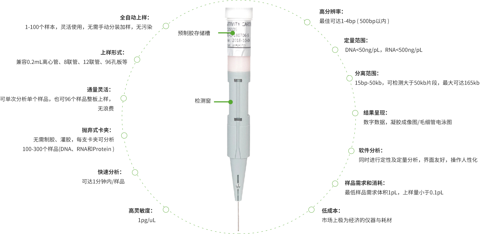 ● 灵敏度和分辨率:1pg/pl, 1-4bp( 500bp以内)
