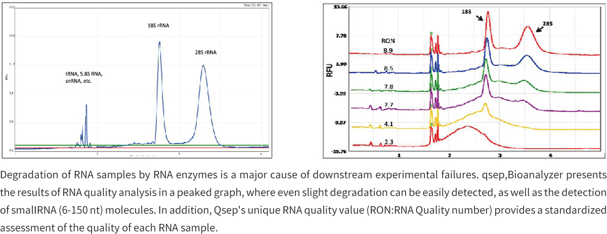 - · Total RNA, mRNA, fragmented RNA, micro-RNA quality control